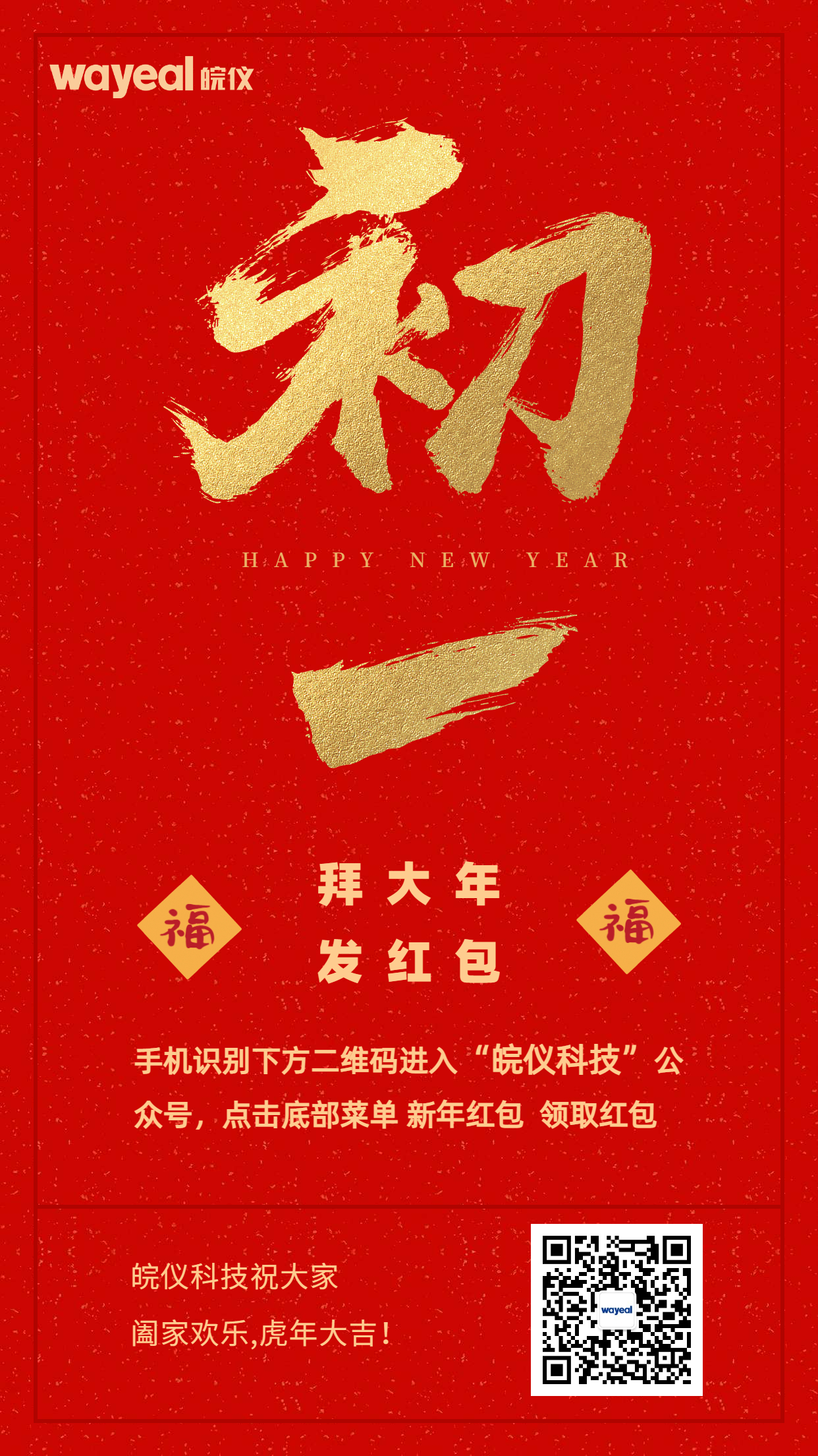 春节到,福气到,皖仪科技给您拜年啦!新年红包9点开抢!