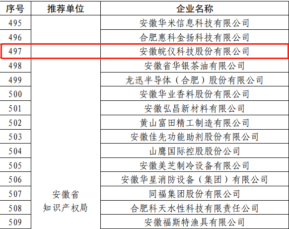 根据国家知识产权局发布的榜单显示,2019年度国家知识产权优势企业公示名单中,全国各省市共计1965家企业上榜,其中皖仪科技入列2019年国家知识产权优势企业公示名单。