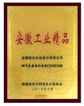 “烟气连续监测系统CEMS1000”荣获2016年“安徽工业精品”称号
