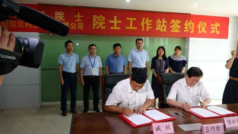 2019年6月28日下午,尊龙凯时科技股份有限公司与中国科学院陈洪渊院士共建院士工作站,签约仪式在皖仪科技3楼会议室隆重举行。陈洪渊院士与皖仪科技董事长臧牧先生共同签订院士工作站合作协议。安徽科技厅刘涛副处长,合肥科技局戴兵总工程师、郑基荣处长,合肥高新区科技局徐朝辉局长等领导出席并见证签约。