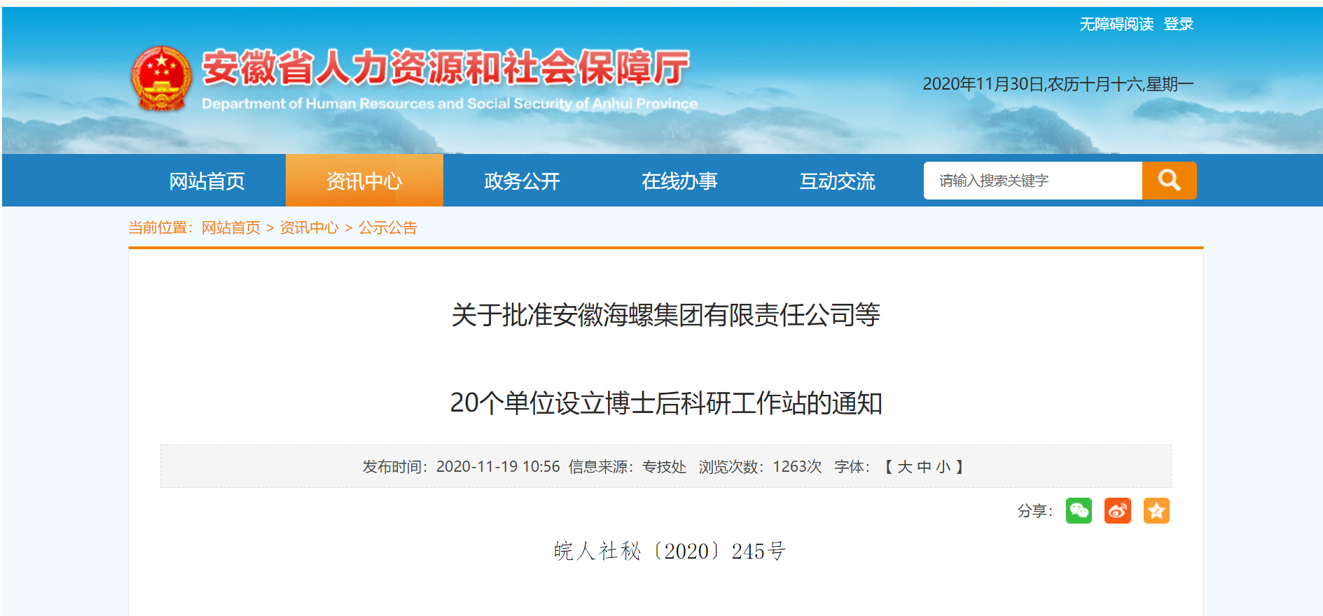 近日,人力资源社会保障部、全国博士后管理委员会联合印发了《关于批准中国科学技术大学先进技术研究院等497个单位设立博士后科研工作站的通知》,其中,皖仪科技成功获批设立国家级博士后科研工作站,开展博士后工作。