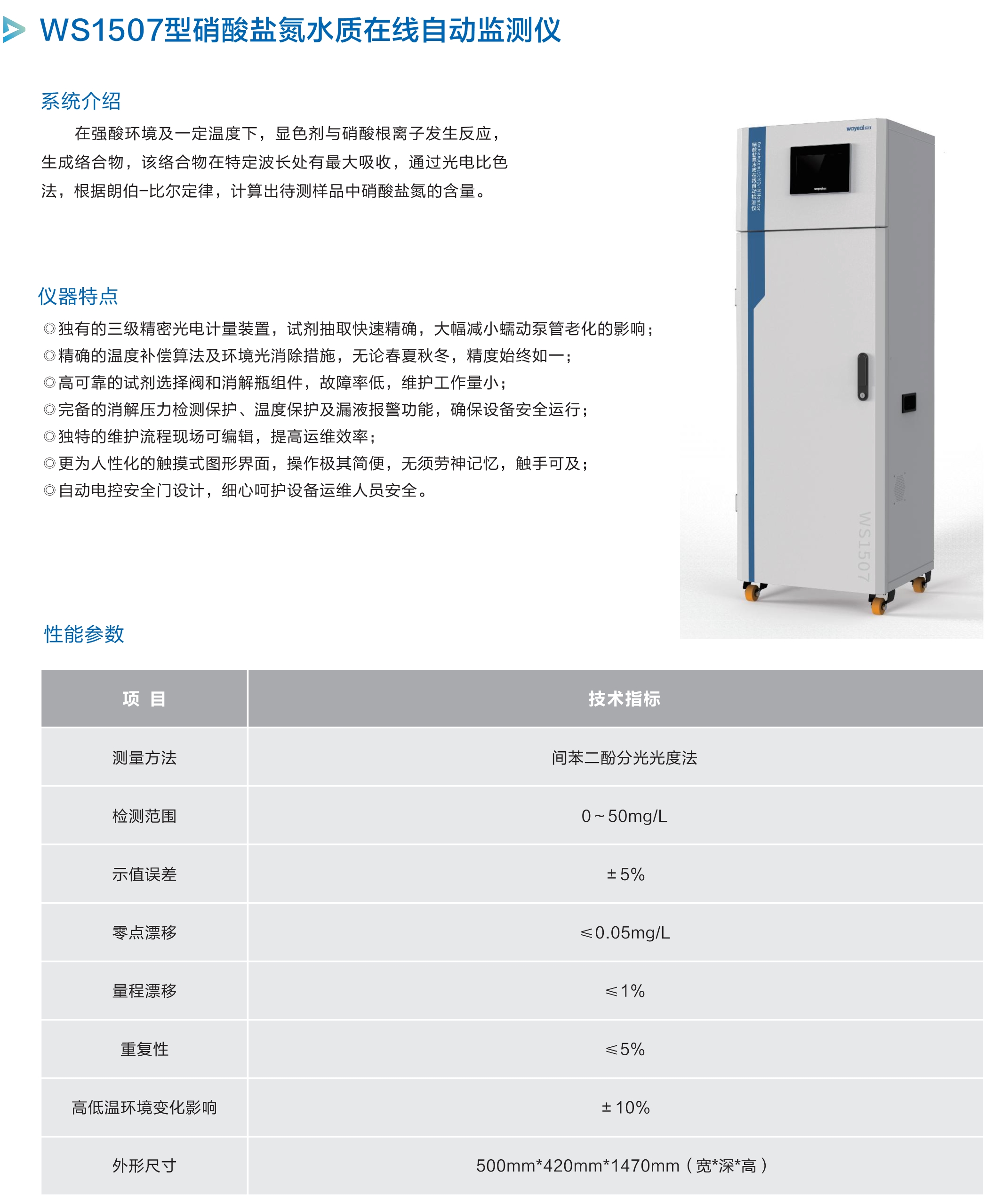 在强酸环境及一定温度下,显色剂与硝酸根离子发生反应,生成络合物,该络合物在特定波长处有最大吸收,通过光电比色法,根据朗伯
