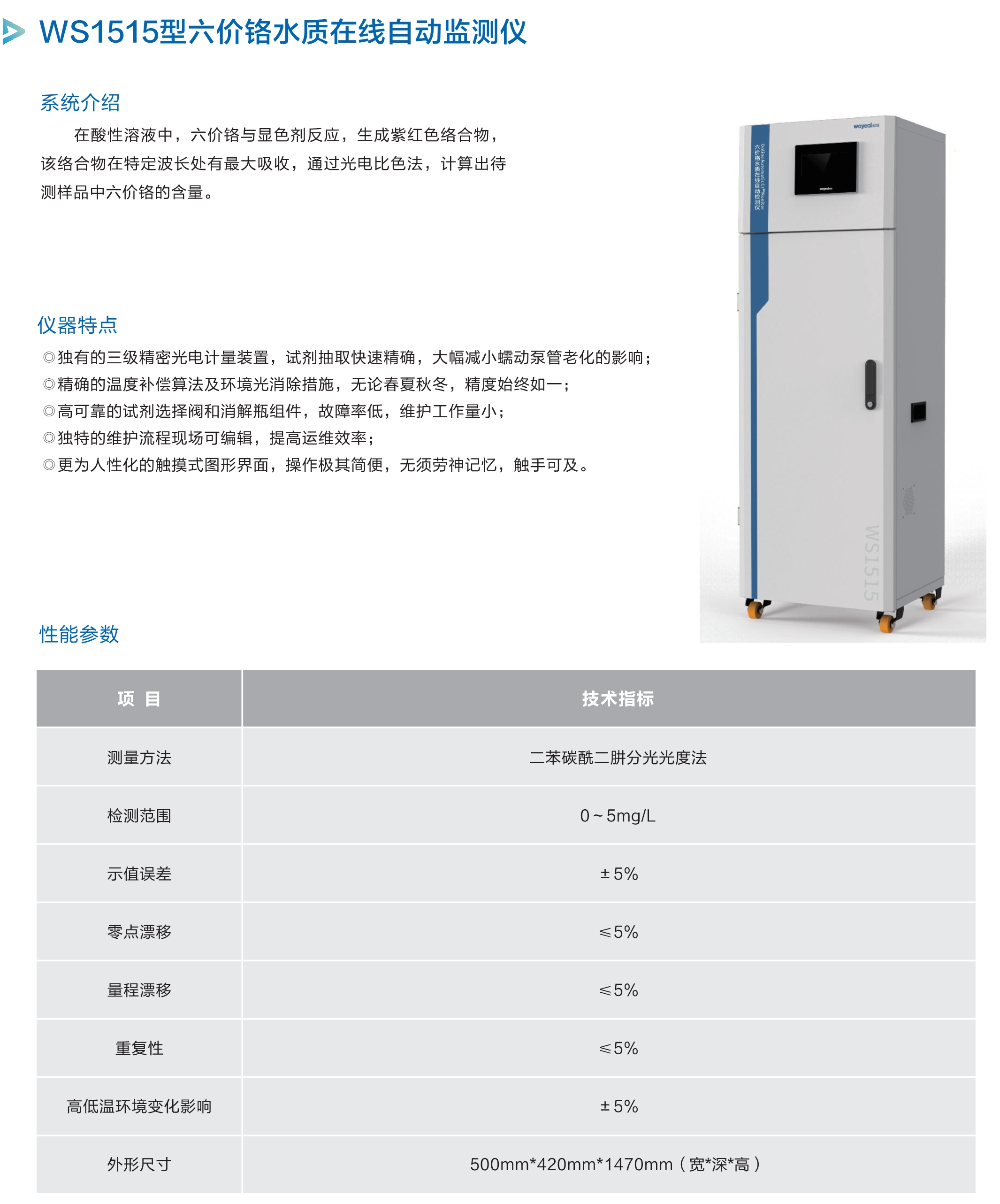 WS1515型六价铬水质在线自动监测仪