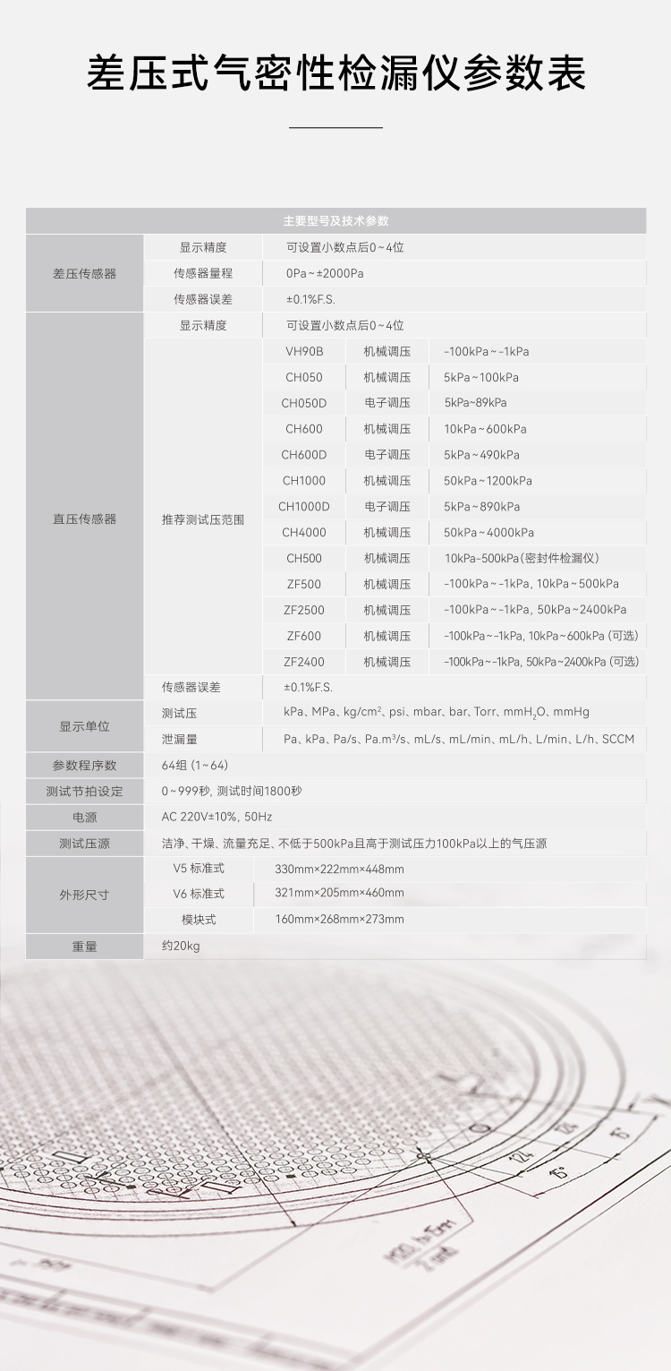 差压式气密性检漏仪装载了低泄漏、动作可靠的专用气动阀组与高感度、高耐压的泄漏检测传感器(压力传感器或流量传感器)。仪器具有极高的直压分辨率和检测灵敏度,并拥有强大的扩展输出、多通道参数设置与选择、大容量记录存储、通讯处理、质量检测、数据传输等功能。仪器操作简单、方便,可实现被测产品在不同条件下的手动或自动测试。
