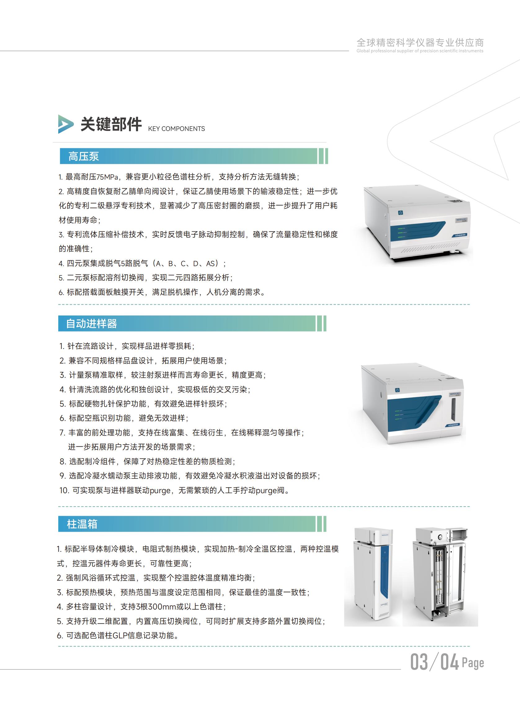 皖仪科技LC3400超快速液相色谱仪是一款兼容性广、可靠性高、功能丰富、性能优异的液相色谱仪。整机耐压高达75Mpa,可以实现从常规HPLC分析到使用粒径小于3μm的核壳色谱柱进行超快速的分离分析。采用高压输液泵,采用二级悬浮技术 、针在流路自动进样系统、柱温箱双向控温等诸多突破技术,可以使得LC3400在实现更加高效的样品分析的同时消耗更少的溶剂,节约用户的实验周期与实验损耗,带来更加高效的实验体验,更稳定的实验结果。
